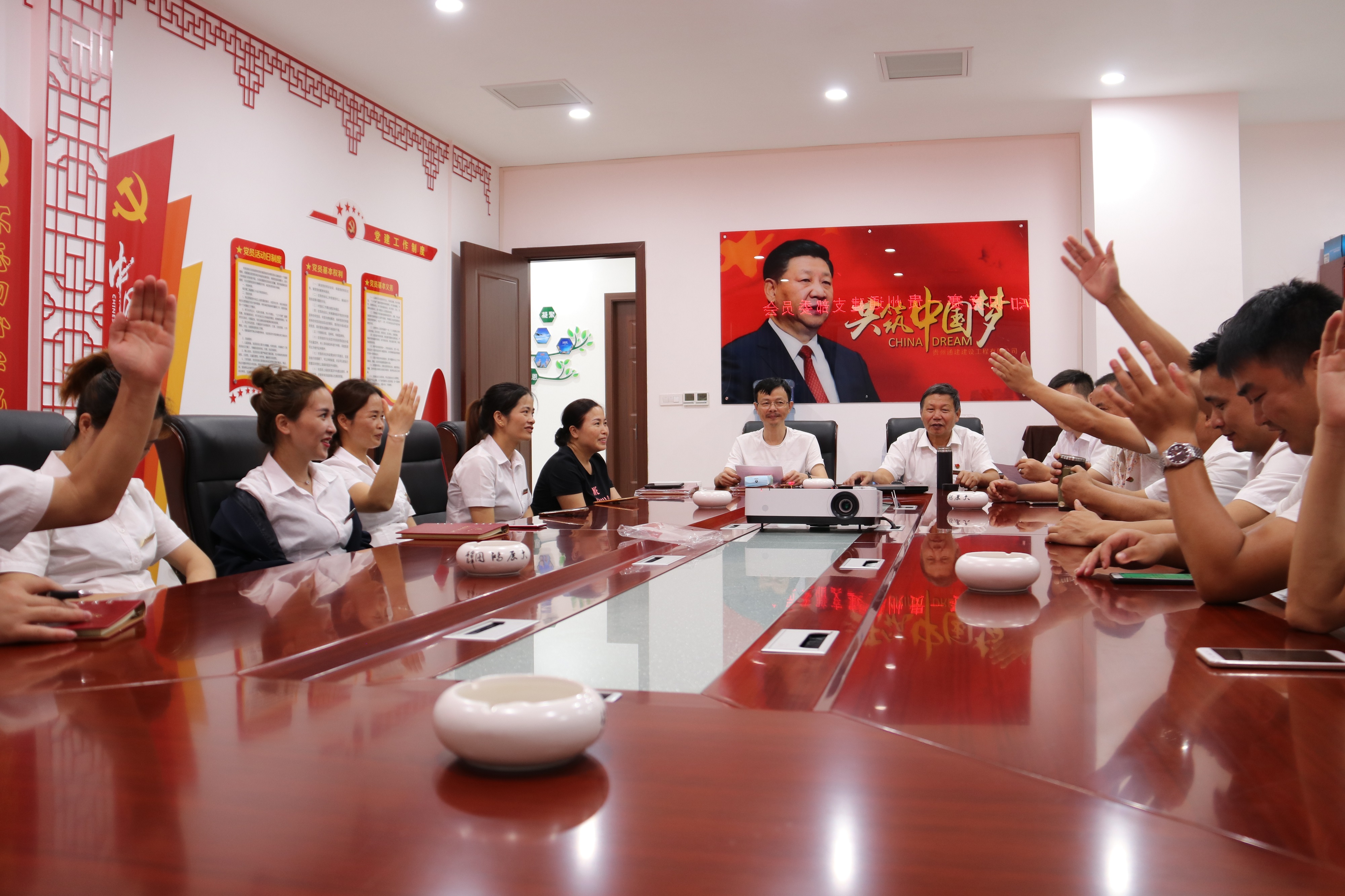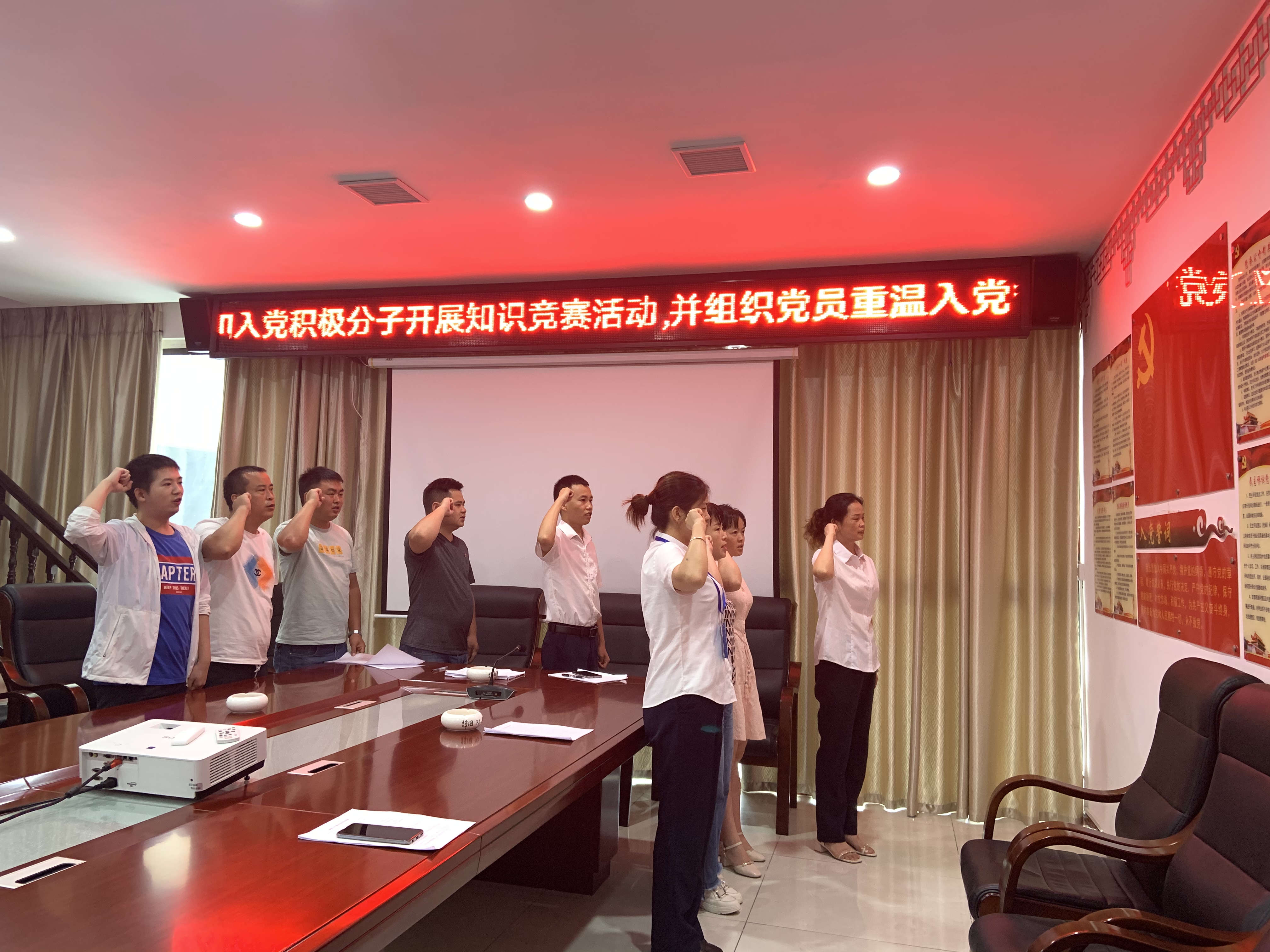 我志愿加入中国共产党,拥护党的纲领,遵守党的章程……”党史知识竞赛结束后,公司党支部组织委员欧壹琴的带领下,全体党员面对鲜红的党旗举起右拳,重温入党誓词,现场气氛庄严热烈。简单而朴实的仪式,使公司全体党员再一次受到了深刻的爱国主义教育,更使大家进一步认识到了肩上担负的责任重大。